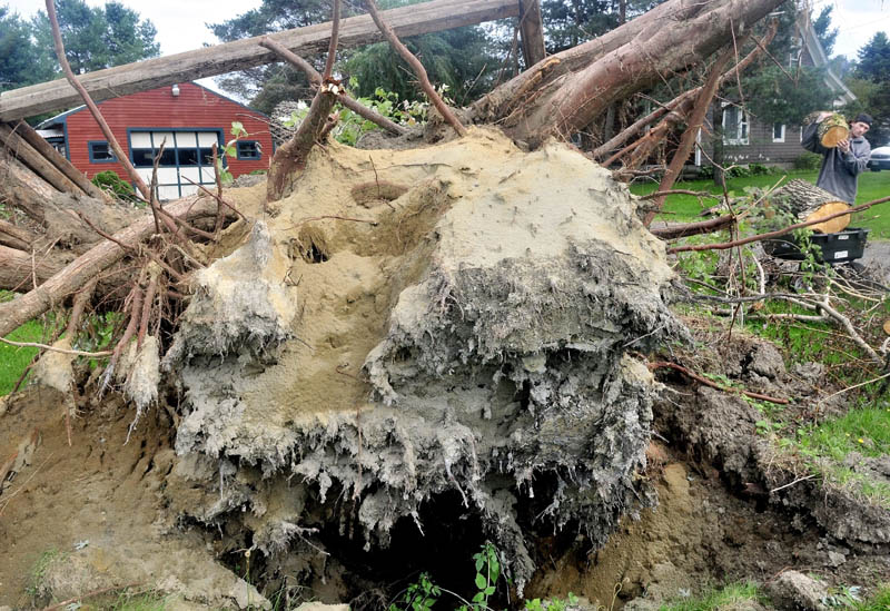 A LOT OF WIND: Josh Horne loads pieces of a 100-foot willow tree on Monday that blew down last week in a neighbors yard in Benton. Horne said he was going to cut and split the wood and use it to heat his camp this winter.