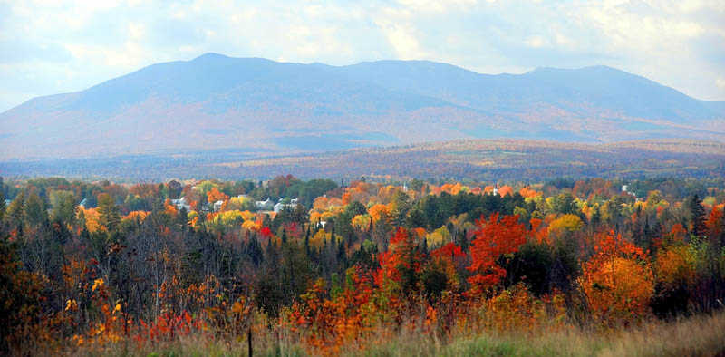 A patchwork of colors fill Carabassett Valley last week. Foliage has peaked in much of Maine, but there are still plenty of turning leaves for a worthwhile leaf-peeping road trip.