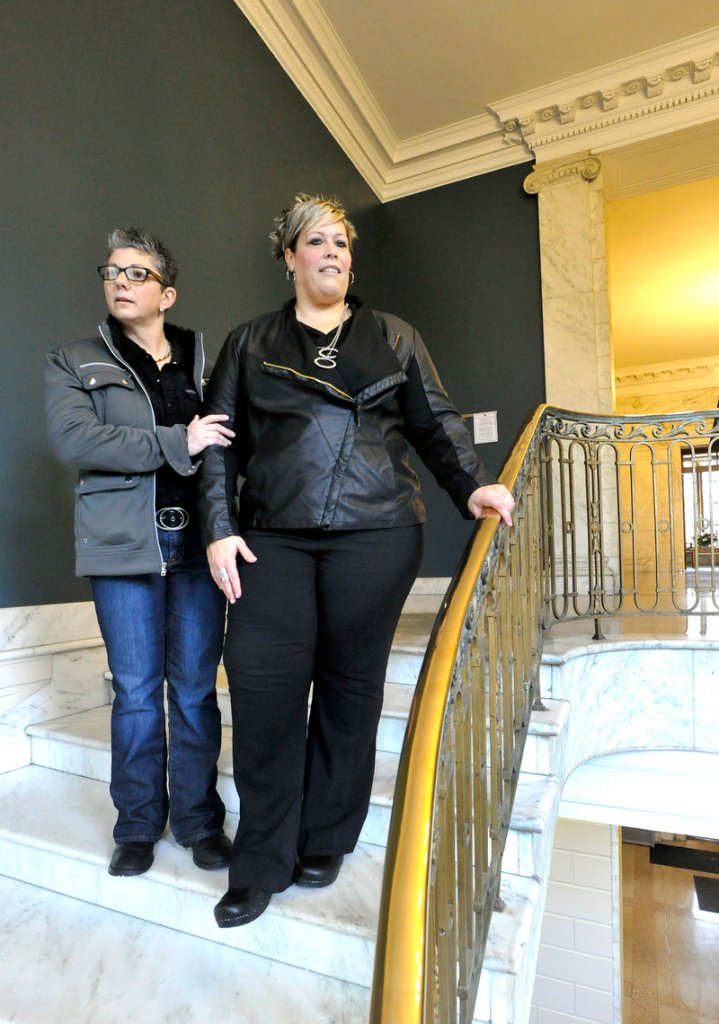 That Gorney, 45, and Galluzzo, 49, would end up on the steps of Portland City Hall hand in hand before a crowd of gay-marriage supporters is a far cry from their early lives. For years, they both dated men, and Galluzzo was even engaged to a man for a time.