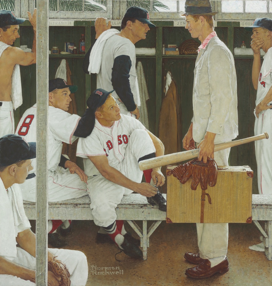 “The Rookie (Red Sox Locker Room)” led the bidding Thursday at Christie’s auction of American art in New York.