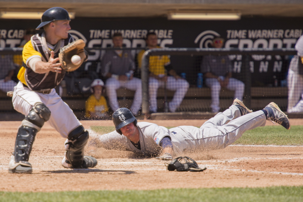 With two outs and Jake Glauser (single) on first, Paul McDonough walked. John Carey fell behind in the count, then lined a single into right field, with Glauser scoring on a head-first slide and McDonough going to third on the throw.
