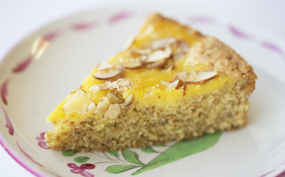 There are many things to cook and bake when life gives you eggs, among them this wonderful six-egg cake from Boston chef Jody Adams. It tastes sort of like a big, soft almond cookie. It’s chewy, pleasantly dense, and the lemon curd adds a bright note and a pretty color. The recipe makes about a cup more curd than you’ll need for the cake. You could spread it on toast, stir it into yogurt or fold it into whipped cream with berries to make a fool. Or you could put it into a jar and give it to your colleague who was nice enough to give you all these eggs to begin with. Thank you, Wendy.