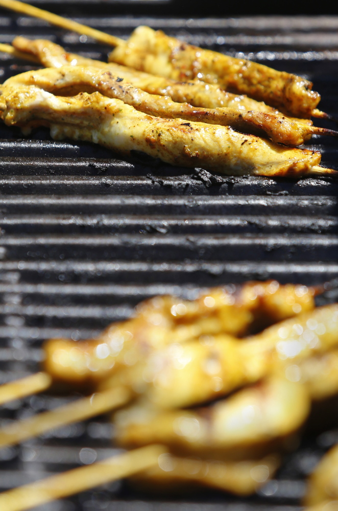 Salt Exchange chef Adam White and sous chef Torr Kelso turn dogfish’s strong flavor and firm texture to their advantage by using a spicy marinade and grilling the fish over an open fire in recipes like this one, which Byron made for last weekend’s Old Port Festival. It was a hit. Byron handed out 25 pounds of dogfish in just over two hours.