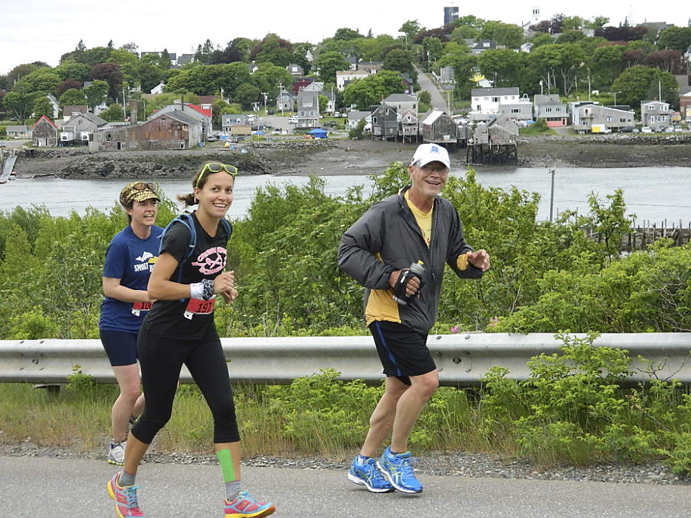 Brother Gordon and his daughter Erica, along with friend Andy McClain, ran the marathon that began at West Quoddy Head Light (the prettiest place in Maine) and continued across the international bridge to East Quoddy Head Light on Campobello, returning to finish on Lubec’s Water Street. Friend Katherine Ayers ran the 10K, from West Quoddy to Water Street.