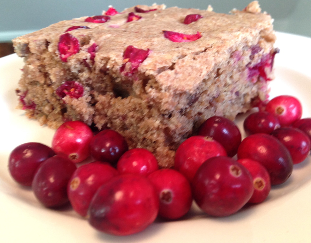 Pour the batter into the oiled baking dish. Sprinkle remaining cranberries over the top. Bake 45 minutes until a toothpick inserted in the center comes out clean.