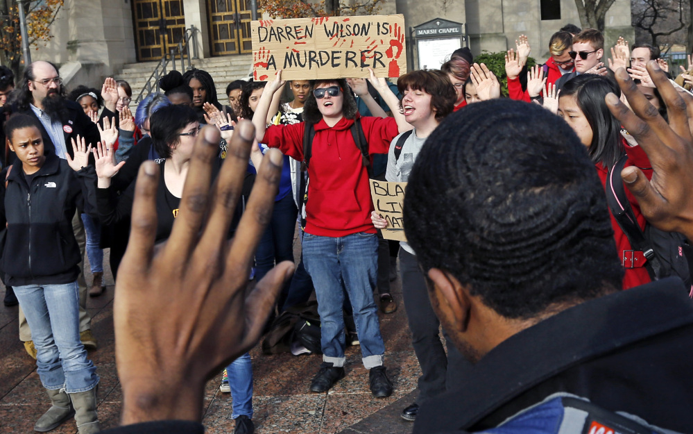 ‘Hands up. Don’t shoot!’ protesters get attention with solidarity gesture
