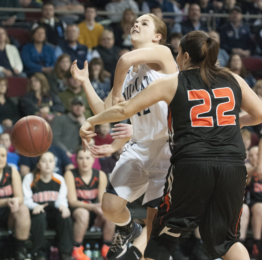 After three minutes and six seconds, Presque Isle had an 11-0 lead. As if that wasn’t a good enough indication of the way things were going, Emily Lagerstrom shot a 3-pointer that hit the iron, bounced straight up, and swished through the net. That made it 16-2, and shortly after, Kingsbury scored inside again to make it 18-2.