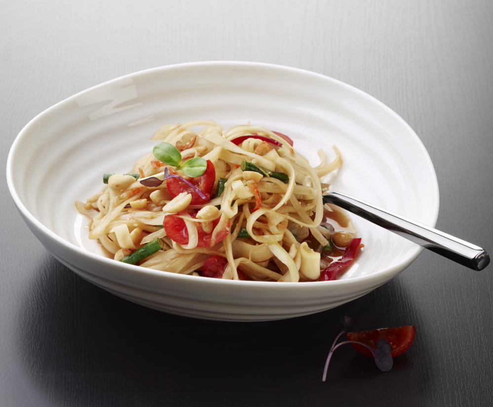 Indeed, the dish is a textbook study in the Thai principles of sour-sweet-salty-spicy, and Kennedy took it all in. At Mango Tree, he used a wooden mortar and pestle he brought from Thailand to lightly bruise the key ingredients, tossing the strips of green papaya with a vibrant dressing just before serving.