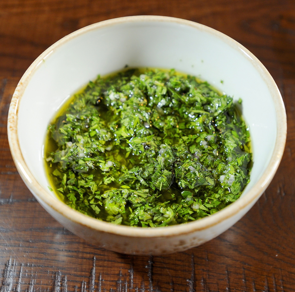Chef Chris Wilcox of The Velveteen Habit in South Berwick mixes sweet, leafy carrot greens with an array of pungent ingredients to make a tangy sauce for summertime grilled meats and fish.