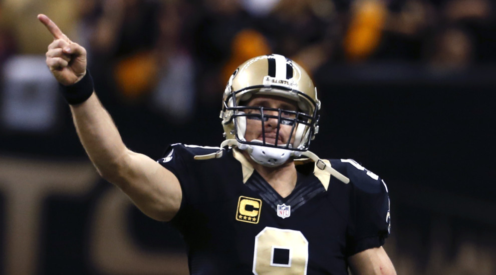 Drew Brees passes for 511 yards and seven touchdowns to outduel the Giants’ Eli Manning, who threw for six touchdowns.