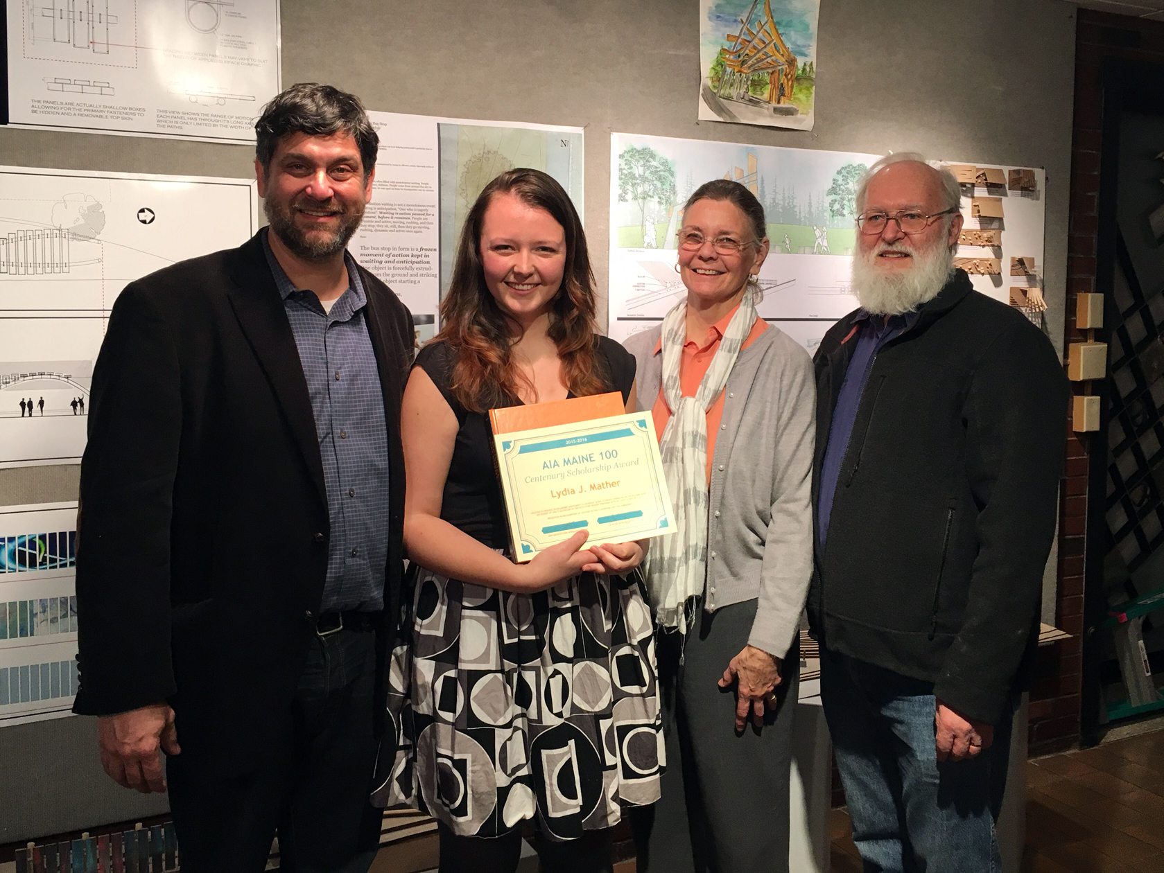 Lydia Mather also received the 2015-16 AIA Maine Centenary Scholarship and it is her words I will share. Lydia is a fourth-year bachelor of architecture student currently holding a 3.8 GPA who has proven herself both as a designer and a leader.