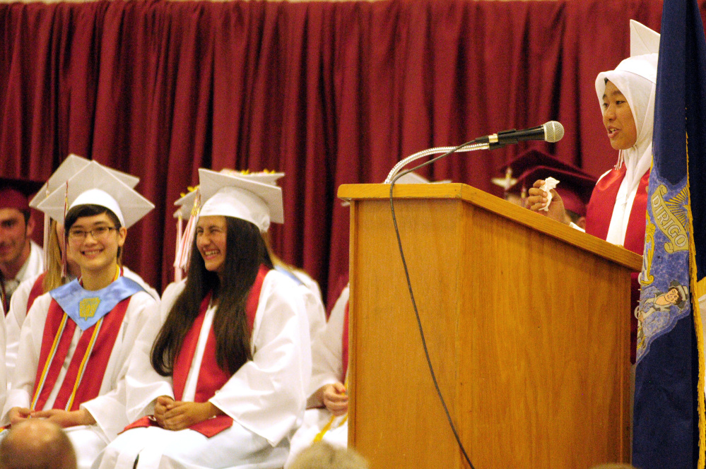 That sentiment was echoed by three foreign exchange students who also were graduating — Ferial Al Samra, from Lebanon; Salma Aina, from Indonesia; and Martin Nguyen, from Vietnam — and delivered short farewell statements.