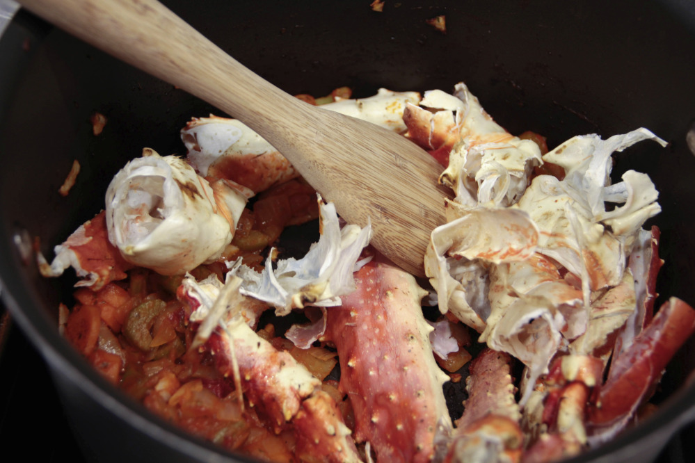 MAKE THE STOCK: Preheat the oven to 400 degrees F. Place the crab shells on a baking sheet and roast them in the hot oven until fragrant, about 5-7 minutes.