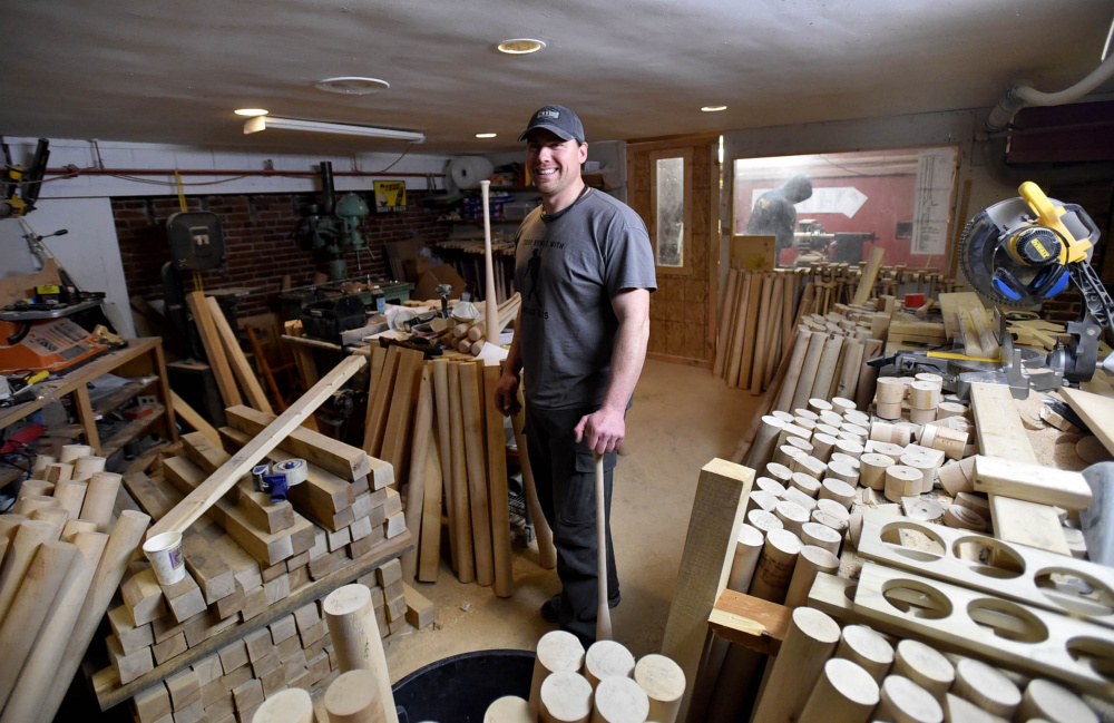SKOWHEGAN — Jesse LaCasse is hitting baseballs with wooden bats he makes himself on site.