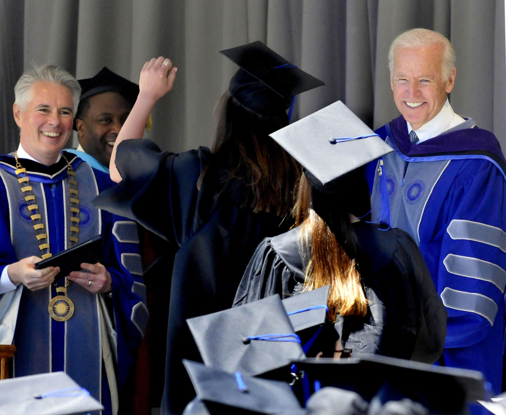 “I hope you remember the ethos at Colby that sought to instill your sense of obligation,” Biden said. “A culture of mutual accountability, and caring. In other words, be a Mule, that’s what it’s all about.”