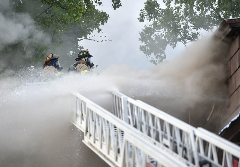 “I don’t know what caused it,” she said on the sidewalk across from the building, where thick, dark smoke had been billowing from near the roof of the brown house. She said the building had propane and old wiring, which could have been the cause.