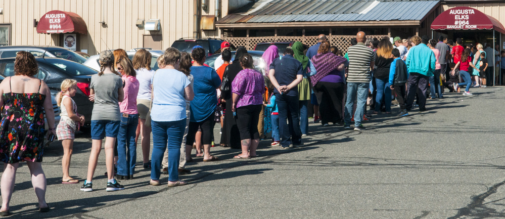 “The turnout has been unbelievable,” said Mike Michaud, exalted ruler of the Augusta Elks Lodge. “We knew there was a need for this in the community. We didn’t realize how much of a need, and what the families need to get kids back to school. … We’re already running out of stuff.”
