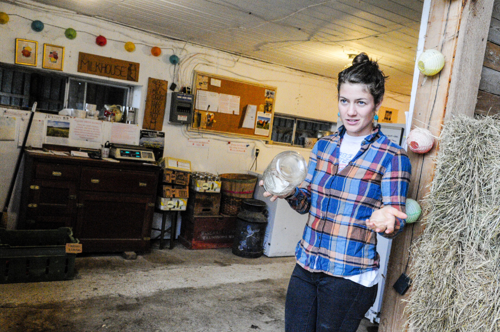 Caitlin Frame talks about the store during an interview Tuesday at the Milkhouse dairy farm and creamery in Monmouth.