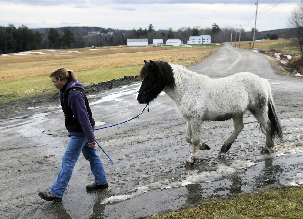 Lisa Kane, of South China, leads an Icelandic horse to a barn in 2014 at Maine Lee Morgan Horse Farm in Manchester. Farm owner Deb Plengey, 66, hopes the farm’s 250 acres stay farmland even after she’s no longer farming.