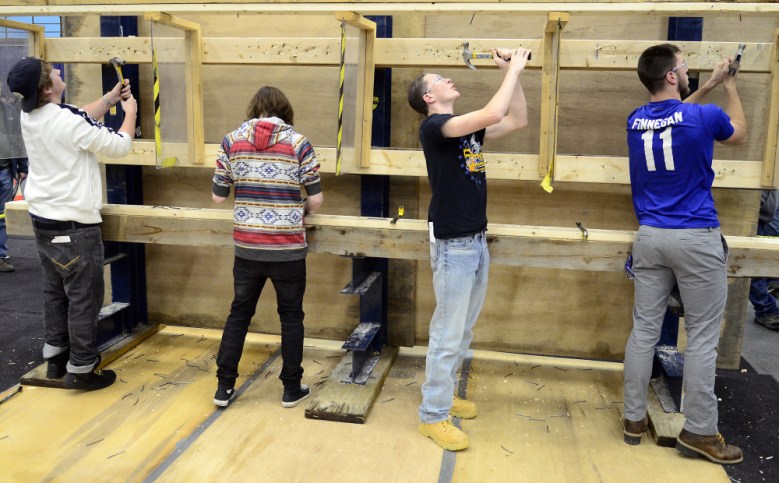 Noah Forget, a 10th-grader at Oxford Hills Technical School, took his turn on the wall and said he just enjoys hammering and nailing.