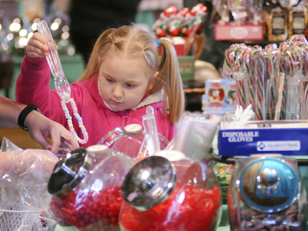 Jaylynn Tenney, 6, of Sidney and her grandmother Angie Newhouse, stopped into Scrummy Afters candy shoppe, to help support local businesses. Newhouse said the two were also heading to the Marketplace at Augusta as well as to the Red Barn Restaurant and Lisa’s Restaurant and Catering in Augusta to get gift certificates as well.