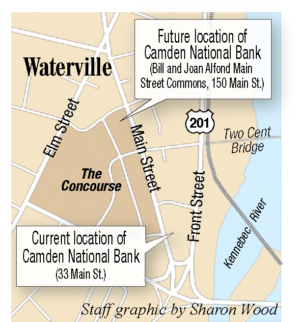 WATERVILLE — Camden National Bank announced Tuesday it will sell its building at 33 Main St. downtown in June to Colby College and will move in early fall onto the ground floor of the new $25.5 million mixed-use residential complex Colby is building down the street at 150 Main St.