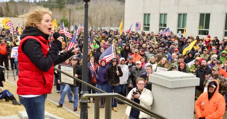 Renee Fortin, of Lewiston, told the crowd, “I learned how to use a gun when I was 5 years old. I grew up in a hunting family. I believe in our 2nd Amendment rights and I hope every single one of you when you’re against legislation that you’re writing to your legislators and calling them and not giving them any rest. Let them know how you feel and don’t be shy.”