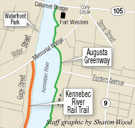 AUGUSTA — The Kennebec River Rail Trail starts in Augusta under Memorial Bridge, but since its founding 17 years ago, the trail head where the paved path starts has had a mile-marker that reads “.25.”