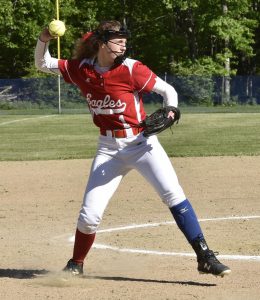 PITCH FOR PITCH: Sophomore Danielle Hall did her best to match Alward’s efforts in the circle for Messalonskee.