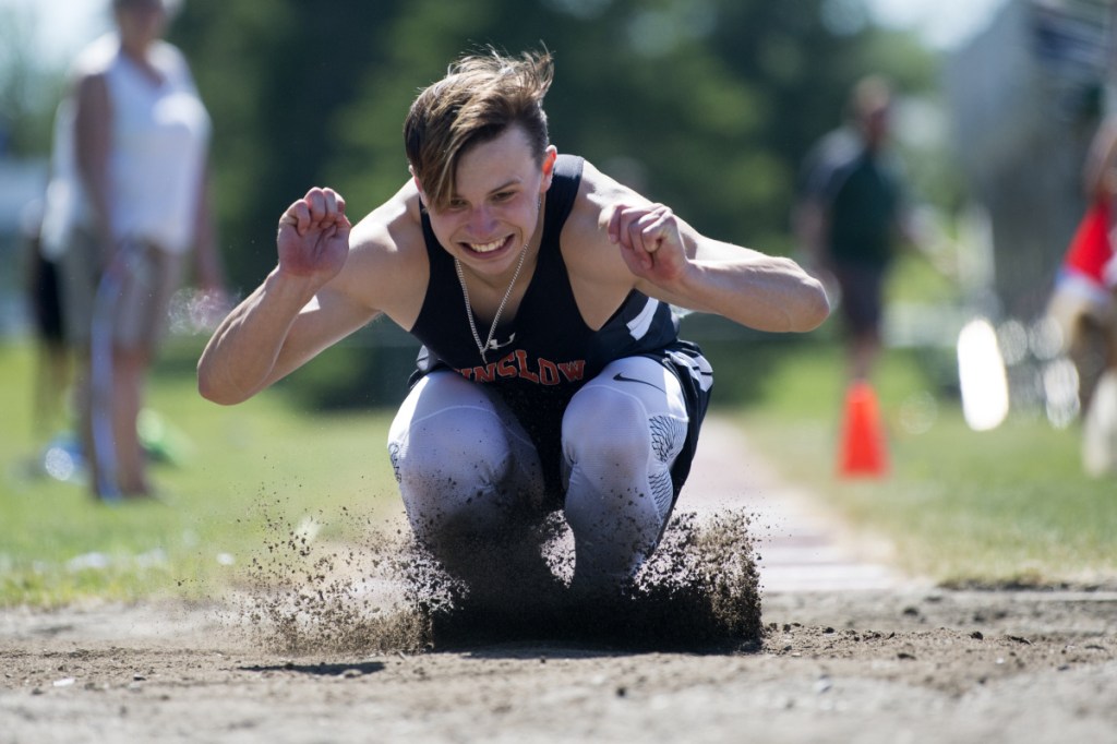 Payton Goodwin of Lawrence won the girls long jump with a jump of 16-5.5. Winslow’s Jake Warn was a repeat winner in the boys triple jump at 44-2.5. Gardiner’s Connor McGuire won the high jump with a leap of 6-2.
