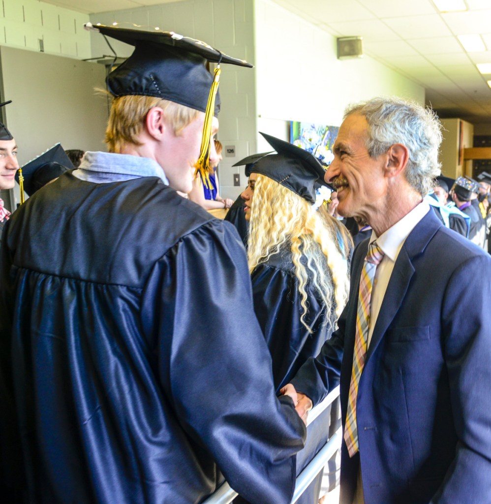 The two were among the 157 graduating seniors at the commencement ceremony at the Augusta Civic Center. Another was Maria Nicole Kempton, daughter of Principal Chad Kempton, who plans to attend Thomas College.