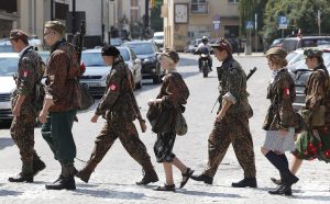 Among the many observances, groups of boy and girl scouts walked through the Mokotow district that saw some of the fiercest fighting.