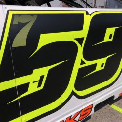 A small No. 7 carved out of reflective black tape is contained within the No. 59 on each side of the car. The reason for Ricker’s madness goes beyond seven being simply a lucky number.