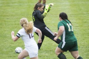 Senior sweeper back Emma Carbone was part of a triangle back four for the Bobcats — along with Lindsie Irish, Mayrbeth Sloat and Bryanne Lancaster — which suffocated the Lakers throughout the proceedings right behind the Kendrick-Irish combination. Rangeley managed just two shots at goal, one in each half.
