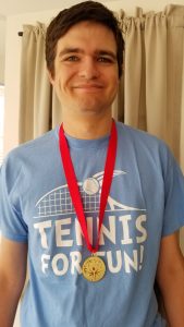 Cody has taken part in Special Olympics for years, in track and field events, bowling, equestrian, and swimming. He took up tennis just a few years ago. Cathy noticed when Cody played tennis on the family’s Nintendo Wii, which requires players to hold the controller and mime the actual motions of playing tennis, his strokes looked fluid and natural.
