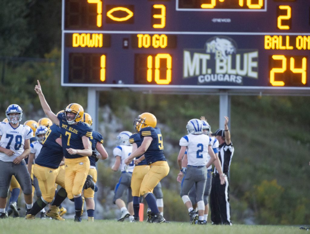 Most of Mt. Blue’s offensive success in Friday’s 34-13 win over Lawrence came on the ground, as the Cougars enjoyed great success running the ball throughout the game. One touchdown, though, highlighted a versatility that could become an important key to the Cougars as they look to earn a playoff spot for the first time in three years.