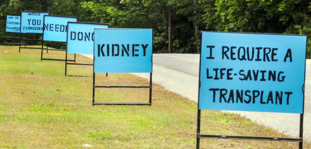 AUGUSTA — A half-dozen signs set up this week along property on busy South Belfast Avenue piece together a highly visible plea from Krystal Reardon for the public to help her find a new kidney.