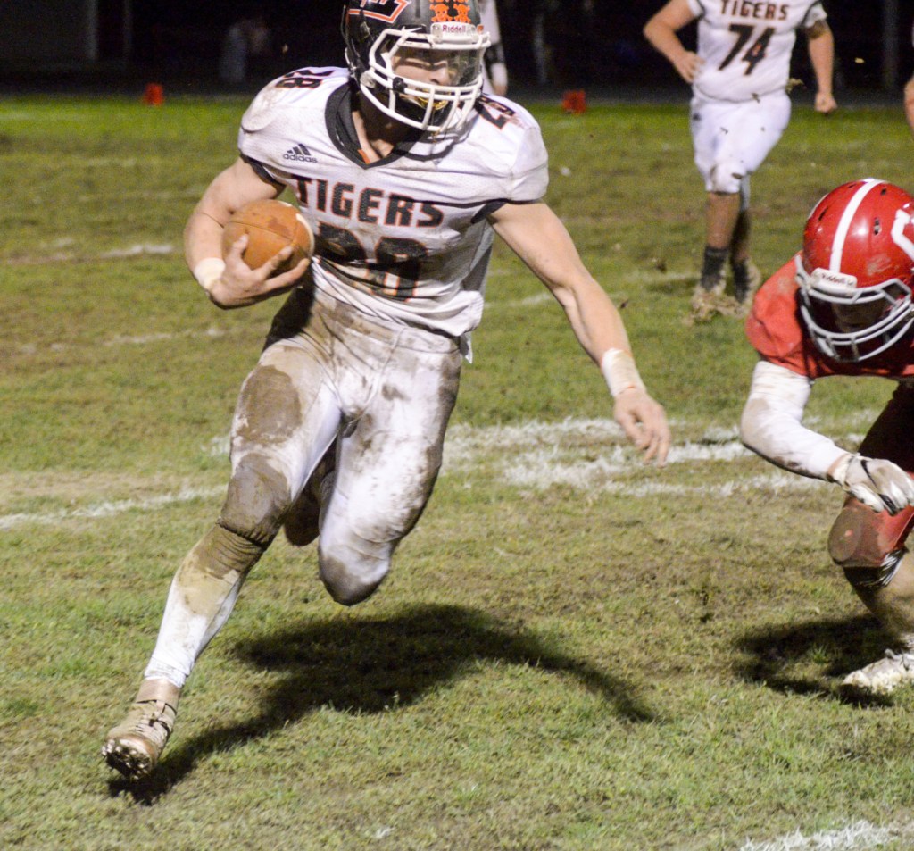 The Tigers held the Rams on the first two drives of the second half, but Michaud had the ball jarred loose by Lucas on the first play after Gardiner took over at its 41, and Wozniak picked it up and ran untouched the rest of the way for a 40-yard scoop and score and a 21-0 lead with 4:56 left in the third.