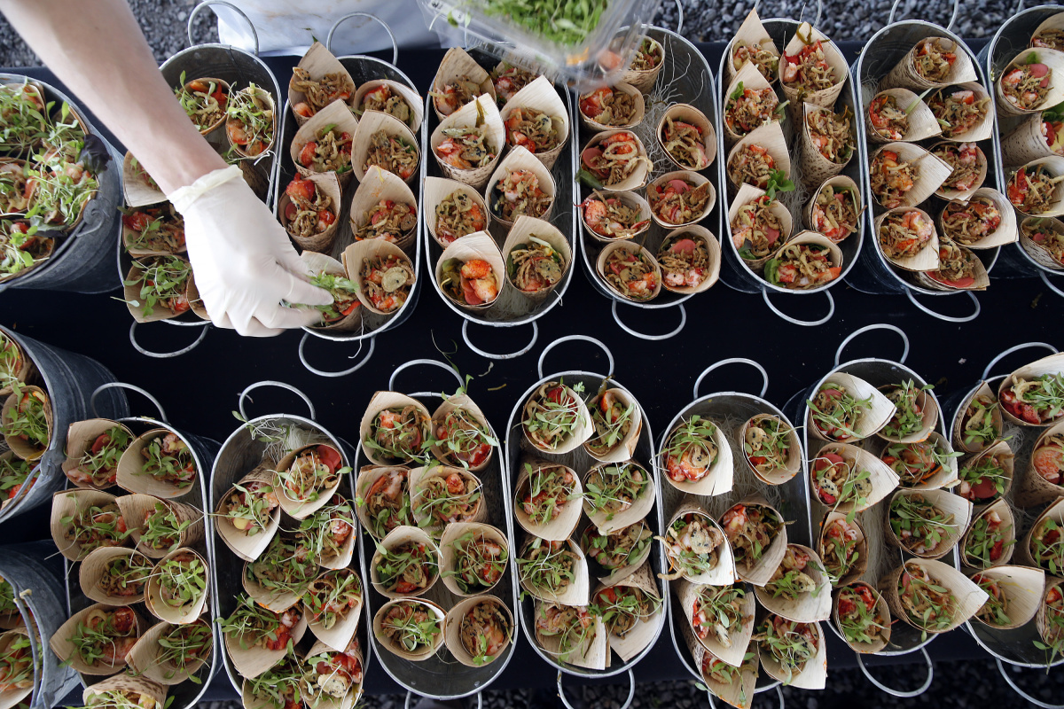 Festivalgoers who’d bought tickets to the eight-course luncheon event, held at the festival’s tent on Commercial Street in Portland, also had their say, and they said differently. The People’s Choice Award went to cookbook writer and inn broker Dana Moos for her charred scallion lobster crepe, which was topped with butter-poached lobster, smoked truffle aioli, soy glaze, and puffed wonton bits. Moos also won this year’s Harbor Claw Down in Boothbay Harbor.