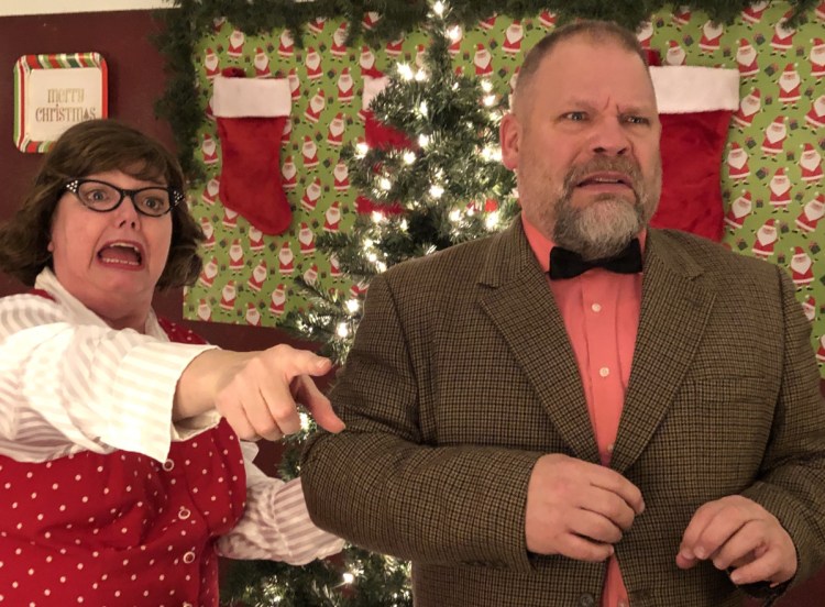 Married thespians Maggie (Cheryl Reynolds) and Mitchell Harcourt (Tobin) constantly bicker, delivering high-spirited tit-for-tat that’s one humorous jab after another. Fellow actor Dotty Cooper (Janelle Doak) has found her holiday spirit inside a flask, and the childlike company manager, Katherine Costello (Gretchen G. Wood), isn’t the brightest bulb in this set of holiday lights.