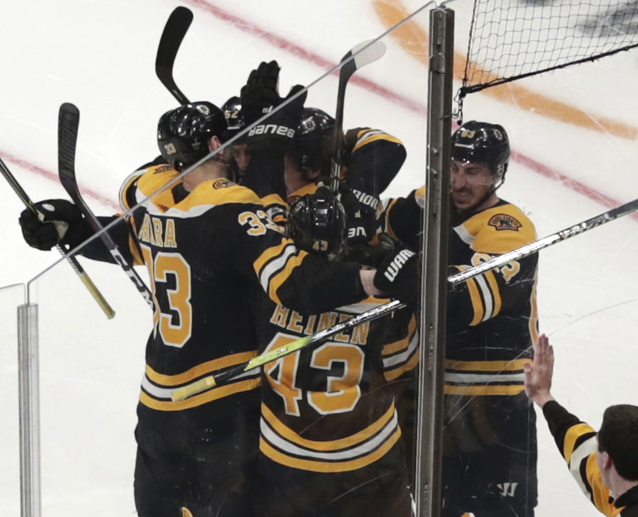 Boston jumps to a two-goal lead in the first period to advance to the second round against Columbus.