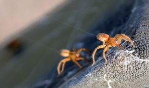 The track resumes parallel to, and just below the road, beside the remnant of a wooden rail fence. Along on the left is a metal bench with excellent spidering — little crab spiders, ballooning wolf spiders, furrow spiders spinning webs underneath the back all summer and fall. Down slope, more wetland vegetation separates the track from the tennis court. To the left is the Little League outfield. When Jack played years ago, I pitched batting practices, hit grounders, filled in as ump. Slapped black flies in the metal bleachers at Memorial Day games. Wow. Someone should write a natural history of rural Little League in Maine.