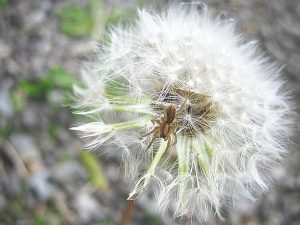 Along that first hundred or so feet westerly, the dandelions, later than usual as usual, finally popped out in mid-May and the flat black gravel track was finally dry. Reed canary grass (I think it is) will soon shoot up in the low wet swath on the right, and there’ll be fleabane and ox-eye daisies, purple thistles will barge in, tendrils of stitchwort, and later, Queen Anne’s lace and goldenrod. Where there are blossoms there are bees buzzing. Dragonflies used to vibrate the whole place but in recent years have been eerily absent.