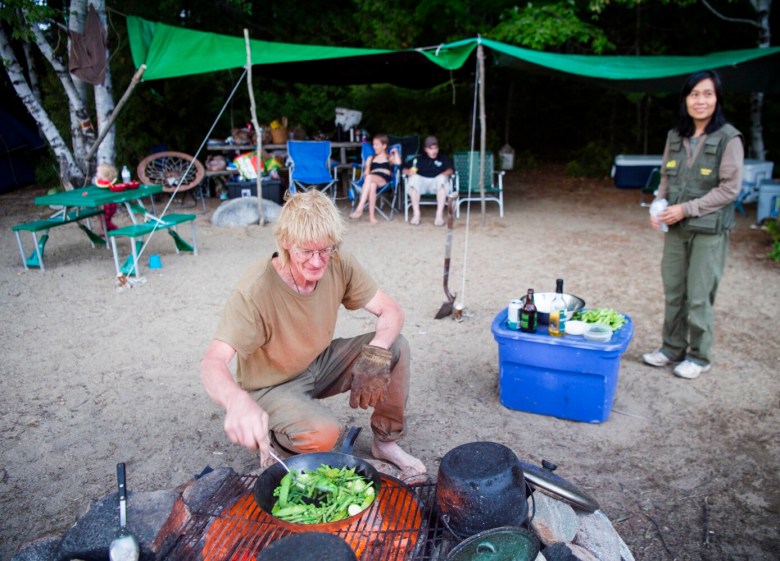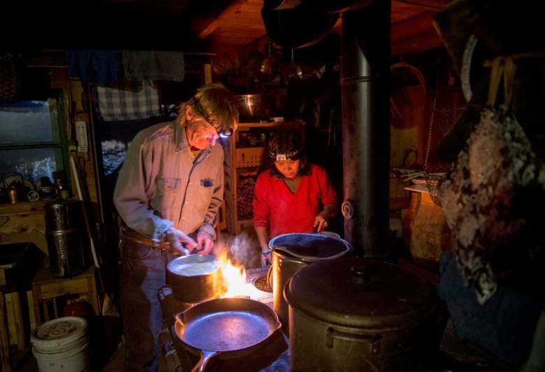 Most days for Hanson and his wife, Sally Kwan, are dictated by the annual rhythms of the forest they inhabit — there is a time and a place to plant vegetables, pull water from the well, hunt meat, fish for brook trout, can tomatoes, chop firewood, harvest cabbages, and pull in blocks of ice from Whipple Pond to cool food stores through the upcoming summer.