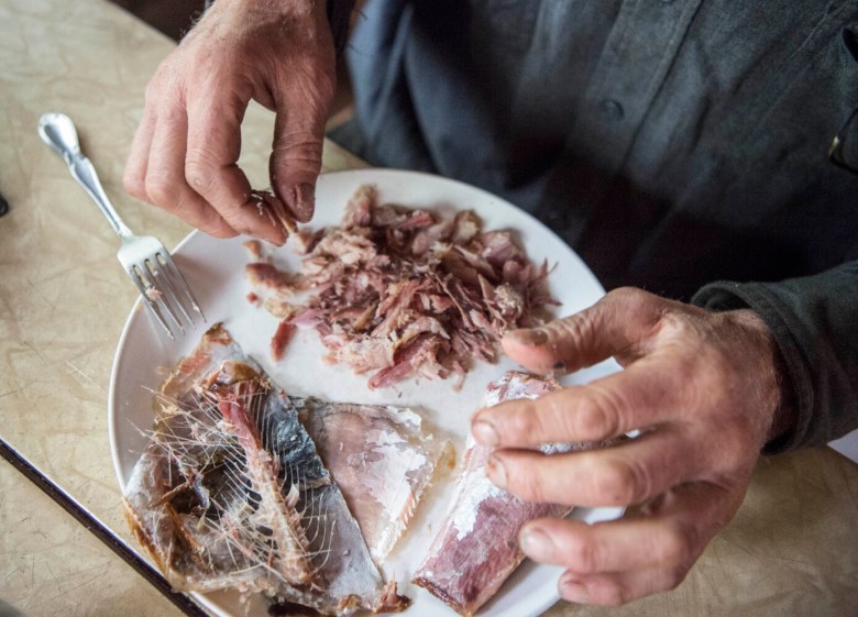 Hanson uses the suckers and chubs to bait tubular traps, later hauling them up with about two dozen 5- to 6-inch crayfish crawling around the inside. Other times, they take a more direct route to dinner, simply dropping a hook into the water while heating a frying pan.