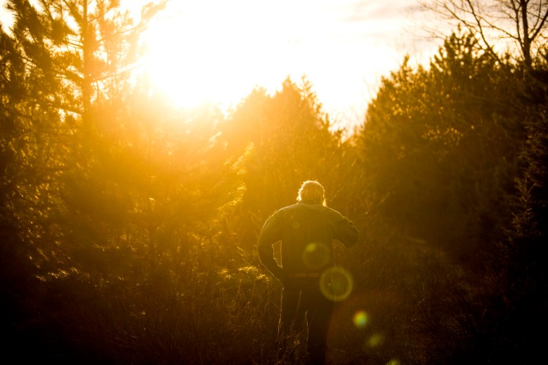 Hanson’s shaggy, straw-colored hair attests to his values; he’s traded barbershops for brooks, finery for the forest, and Netflix for a night sky free of the light pollution of more civilized environs.