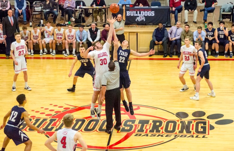 Traip was seemingly on its way to a runaway win when it took advantage of a mistake-prone Hall-Dale team and took a 39-26 lead into halftime, but the Bulldogs battled back, going on a 13-2 run of their own that tied the game for the first time at 43 with 1:02 left in the third quarter.