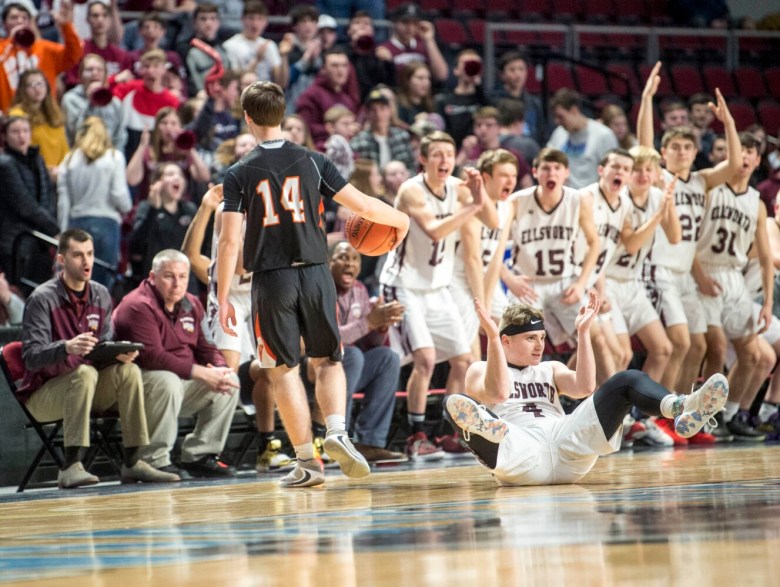 Down 52-49 with the ball and a chance to tie, Winslow turned the ball over with 36.4 seconds left. Ellsworth (16-3) made six free throws in the final minute to seal the win.