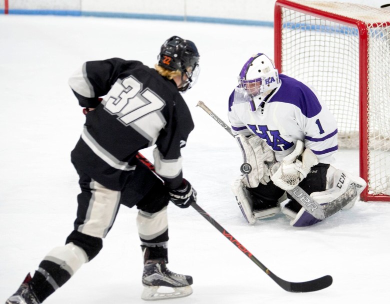 “He had a good game. He works hard,” Hampden coach Eric MacDonald said. “If you asked him, he probably doesn’t know how many points he had. He just keeps playing shift by shift, and that’s the focus. He plays every shift as hard as he can.”