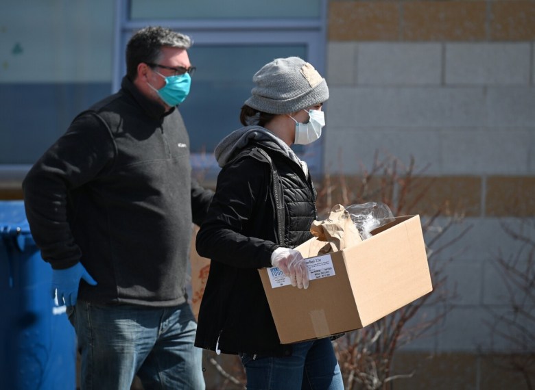 As families pulled up to the school’s driveway in their vehicles, they were approached with a series of questions: Do you need a laptop? Do you have internet?